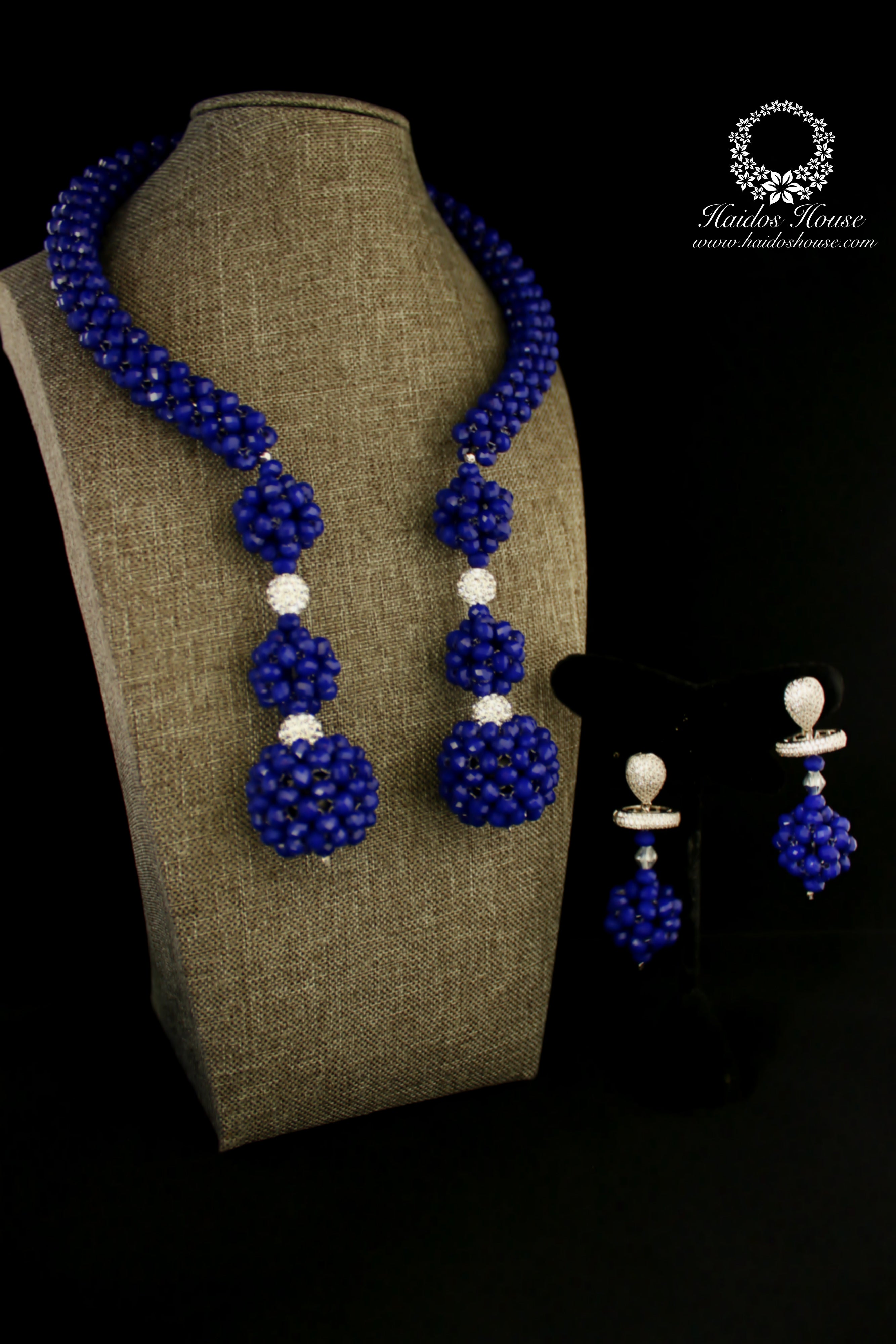 R E G A L!!! This piece is fit for the Queen in you!!! Let your look speak volumes in this regal jewelry set. This set comes with matching earrings and bracelet and it is perfect for weddings, engagements, etc. This design can be made in most color combinations. Need to order more than 1? We've got you covered! Call us today at 516.253.0141 or send an email to info@haidoshouse.com.