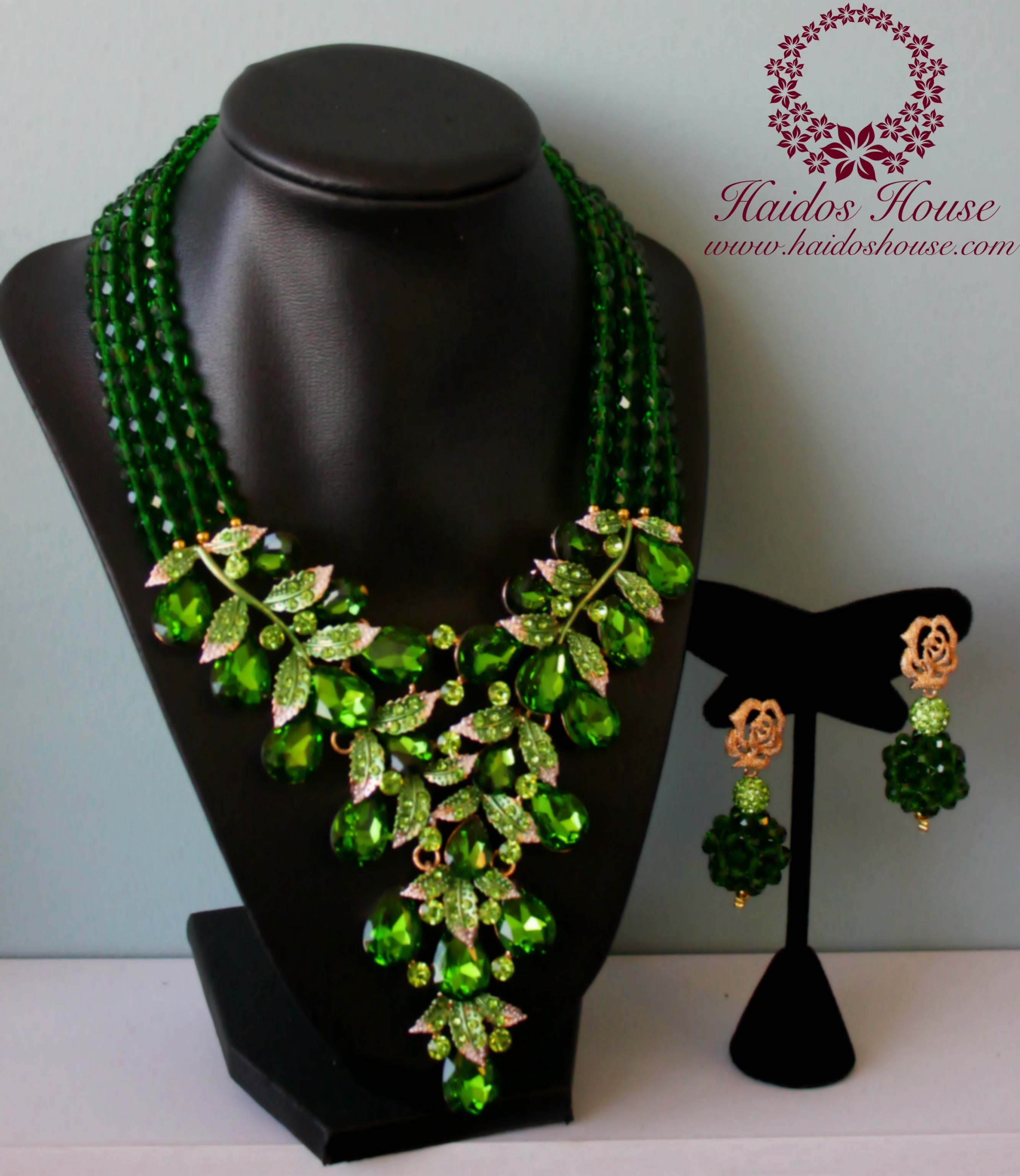 HBS 1204 - Haidos Emerald Green Crystal & Beads Bespoke Jewelry Set