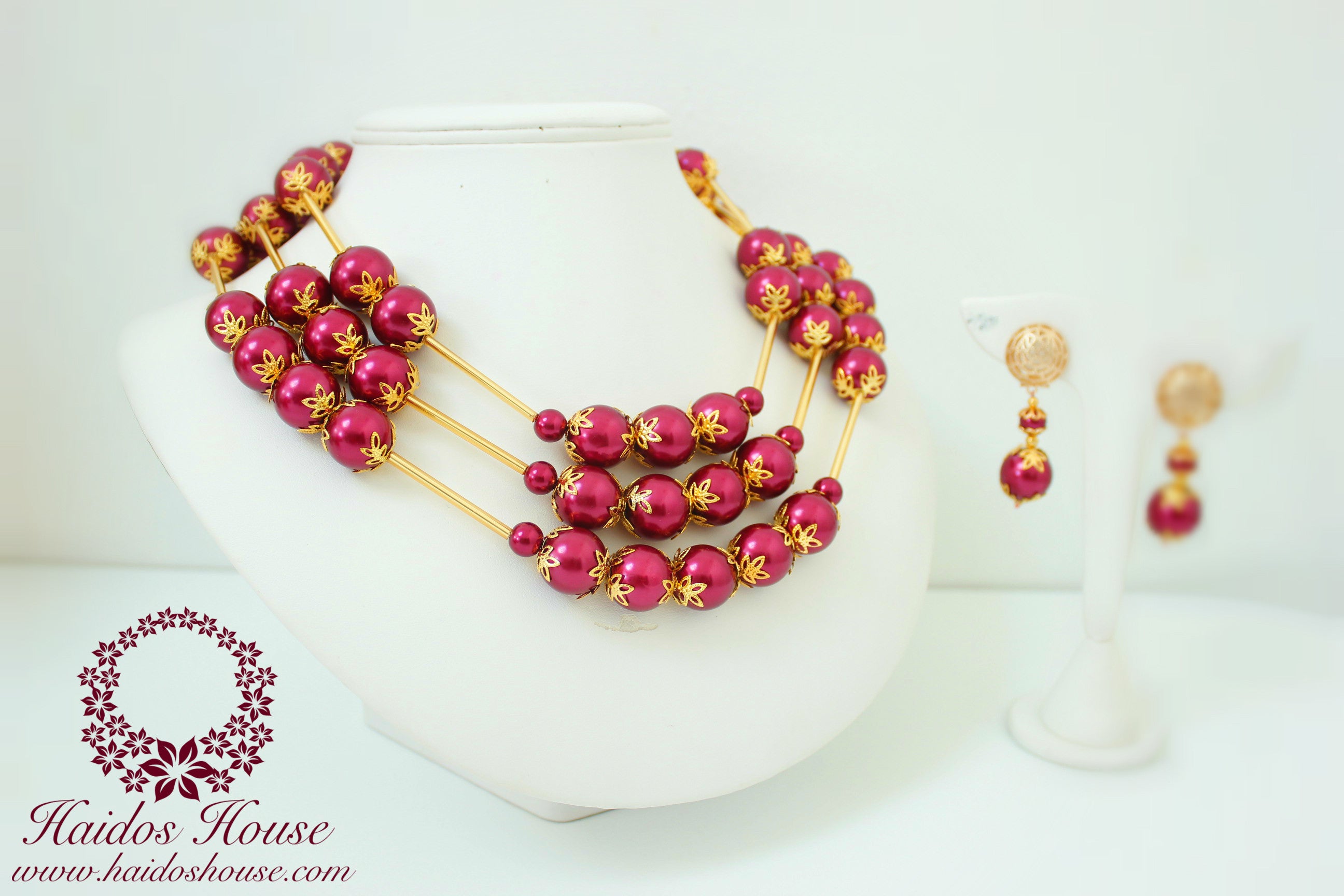 HBS 1218 - Haidos Wine & Gold Bespoke Beads Set
