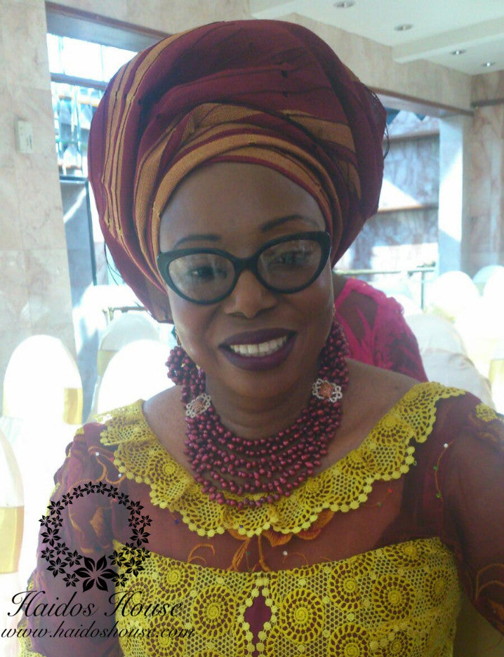 It's REGAL! It's a WINNER!!! It's For YOU!!!! You can't go wrong with this lovely piece made from wine pearl beads and embellished with wine stoned gold accessories. This design is perfect for any event from weddings, traditional marriages and engagements to birthdays, anniversaries, etc. We'll design your unique color combination and style....just give us a call!