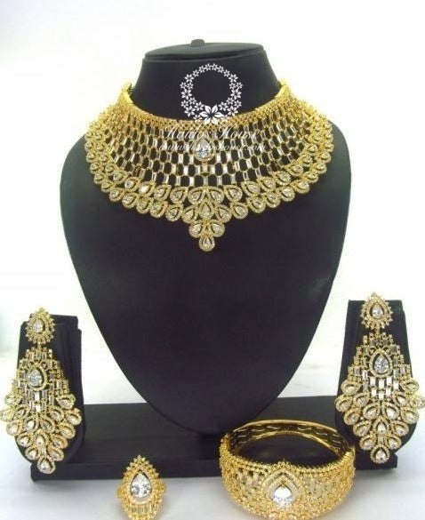 This is an absolutely stunning and elegant jewelry set made for the Queen that you are! Give your style a bold, chic and classy touch with this beautiful 18K Gold Plated, tarnish resistant, 4 piece choker set.Â